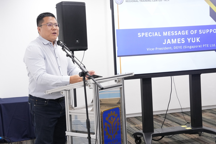 Mr. James Yuk, Vice-President of Deye Inverter (Singapore) Ltd. delivered his message of support to TESDA Regional Training Center – NCR.